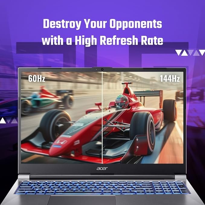 Experience powerful gaming with the Acer ALG AL15G-53. This 15.6-inch laptop features a 13th Gen Intel® Core™ i5-13420H processor, 16GB of DDR4 RAM, and a 6GB NVIDIA® GeForce RTX™ 3050 graphics card. Enjoy ultra-smooth gameplay on the 144Hz Full HD display. Comes with a 512GB Gen4 SSD, Windows 11, and a multi-color backlit keyboard in a sleek 1.99 kg Steel Gray chassis.